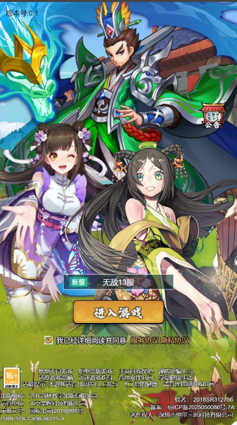 游戏介绍:《三国将无双(0.1折猛将争霸)》当三国乱世遇上二次元画风,当开箱放置玩法颠覆传统卡牌,一场“开箱即巅峰”的热血征程就此开启!武将全属性自由定制,跨服竞技争霸三国!在这里,吕布可化身“机甲战神”,貂蝉能觉醒“幻音魔女”形态,开箱即得限定神装、自选神宠,散人玩家也能吊打土豪,一统乱世! 《三国将无双(0.1折猛将争霸)》当三国乱世遇上二次元画风,当开箱放置玩法颠覆传统卡牌,一场“开箱即巅峰”的热血征程就此开启!武将全属性自由定制,跨服竞技争霸三国!在这里,吕布可化身“机甲战神”,貂蝉能觉醒“幻音魔女”形态,开箱即得限定神装、自选神宠,散人玩家也能吊打土豪,一统乱世! 开始玩
